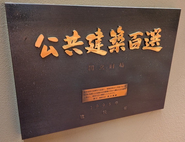 公共建築百選【国立劇場】の顕彰碑です。 上記の理由で自分では撮影出来ない為、私の情熱をお伝えした所、後日スタッフの方に撮影して頂きました。ありがとうございます。 |