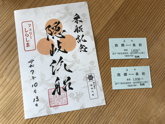 中之島の菱浦港まで大人一人1600円です。御船印も購入します。 |