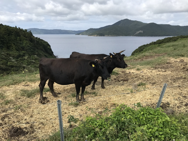 西ノ島、中ノ島、知夫里島の3島は、外輪山の名残と考えられています。右の島が西ノ島で手前に見えている山が焼火山です。左の島が知夫里島です。 天気に恵まれたおかげでとても満足のいく景観を楽しめました。 |