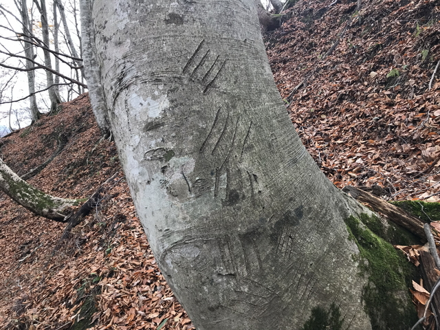 クマのマーキング跡でしょうか。 怪しげではあるもののクマのマーキング跡にしては綺麗に傷が付きすぎている気がします。 |
