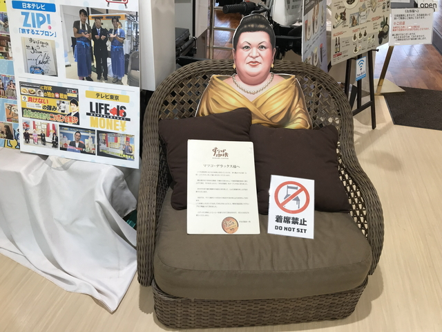 マツコ・デラックスさん待ちの椅子が用意されています。 折角なので一服していっても良いのですが、妻は珈琲が好きではないので…。 |
