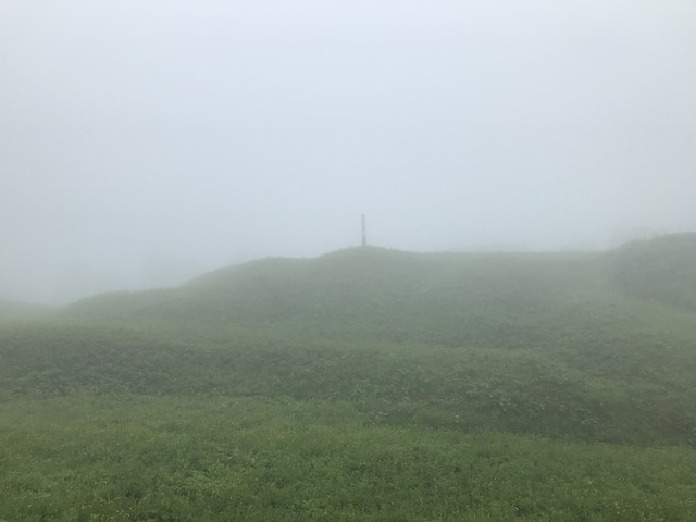 道沿いに登りますが、物凄い濃霧が広がっています。 |