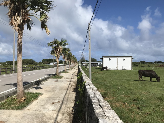 さんご礁で出来た島なので隆起が特に少なく、牧草地帯が広がっています。 |