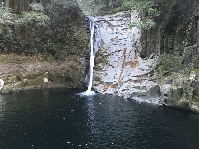 落差約8mの滝です。今日は水量が少ないように見えますね。 |