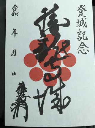 勝龍寺城の御城印です。 JR長岡京駅前観光情報センターで購入しました。右側が細川藤孝の書状の文字をもとにデザインされた限定版です。 |