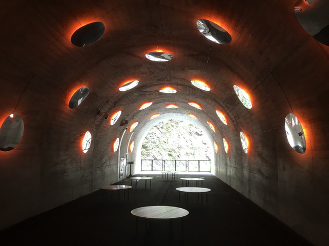 清津峡渓谷トンネルは全長750mの歩行者専用トンネルで、3か所の見晴所があります。 |