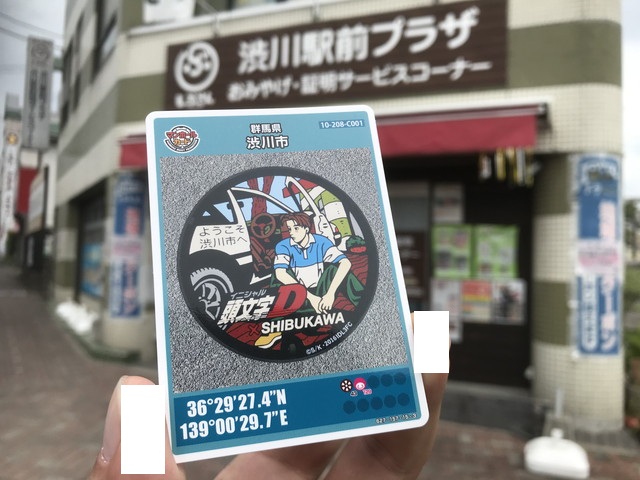渋川地区名産品センター(しぶさん)に立ち寄って、渋川市Cのマンホールカードを頂きます。 さっきのマンホールと同じ絵柄だ。 |