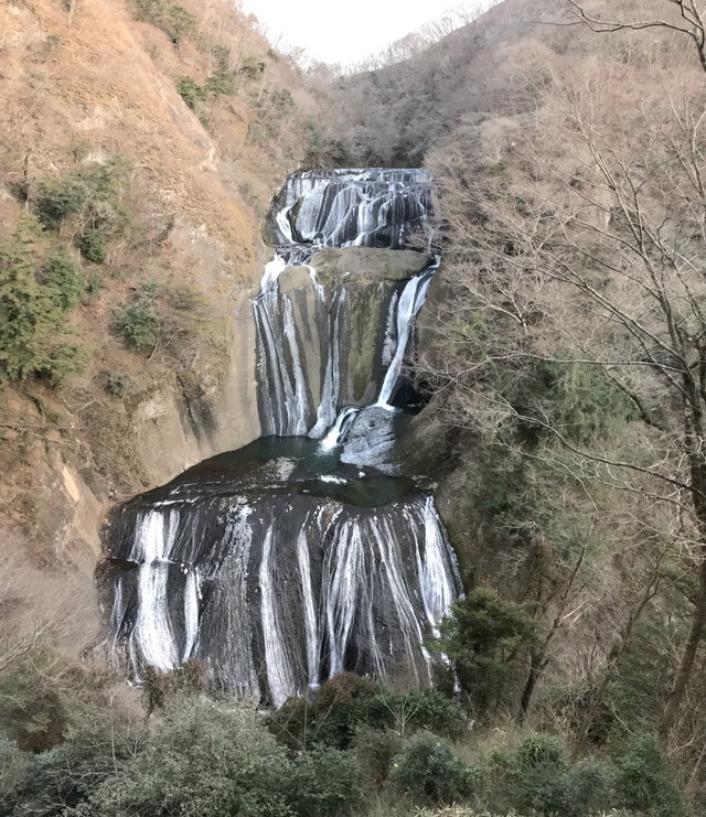 袋田の滝(ふくろだのたき)は、茨城県大子町袋田にある落差120m、幅73mの滝です。 |