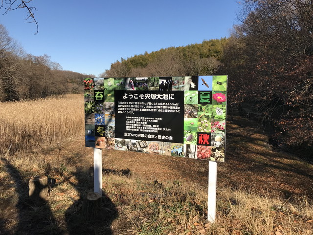 宍塚大池は、蓮の群生が見られるとのことでしたが、湖面に蓮らしきものはなく何年か前に絶滅したのだとか。 |