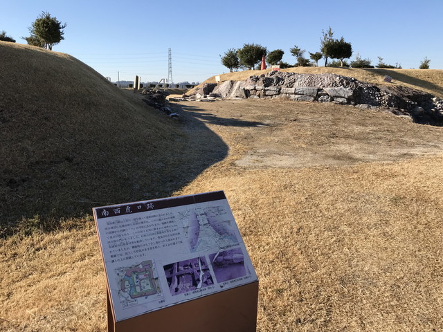 縄張りが復元保存されています。 現在は「小田城跡歴史ひろば」として整備されています。 |