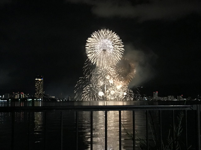 琵琶湖湖岸に一気に移動してびわ湖大花火大会です。 |