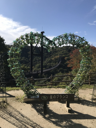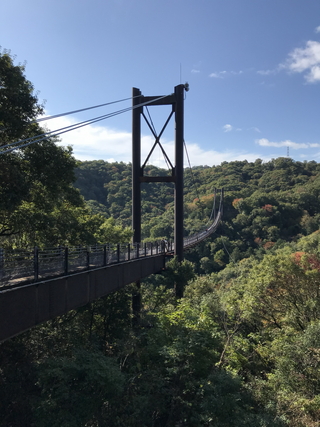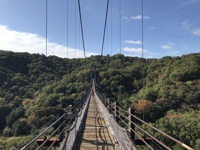令和07年11月01日に訪問しました。 星のブランコは、大阪府交野市星田にある大阪府民の森ほしだ園地にある吊橋です。 星のブランコは、平成09年(西暦1997年)の完成で、全長280mの歩行者専用道路となっています。正式名称は現地の案内によると交野吊橋のようです。 ほしだ園地は駐車場1時間200円、入場無料の自然公園です。駐車場から約30分ほどで星のブランコに到着します。最大地上高50mの木板床だったので私は序盤3割程度で限界を迎えUターンしております。 日本の橋100選【星のブランコ(府民の森ほしだ園地吊り橋)】。 |