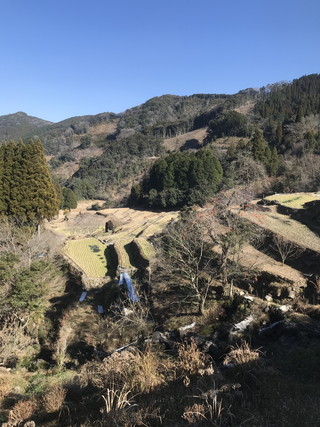 令和04年01月03日他、何度か訪問しました。 鬼の口(おにのくち)棚田は、熊本県球磨郡(くまぐん)球磨村一勝地中屋にある棚田です。 鬼の口棚田は、山の斜面に約80枚の水田が段々に並んでいます。江戸時代の開田とされており、丸石による石積み棚田となります。球磨川の支流・芋川を水源としているので、川から丸石を集めてきたのでしょうか。 現地は県道15号線沿いにあり、道路上からもよく見えますが、駐車場がないのでご注意ください。 日本の棚田百選【鬼の口棚田】。 |