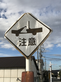 個人作成だと思われるオリジナルの歩行者注意も良く見かけます。天狗注意やお遍路さん注意は非常に地域性があり、私好みです。 |